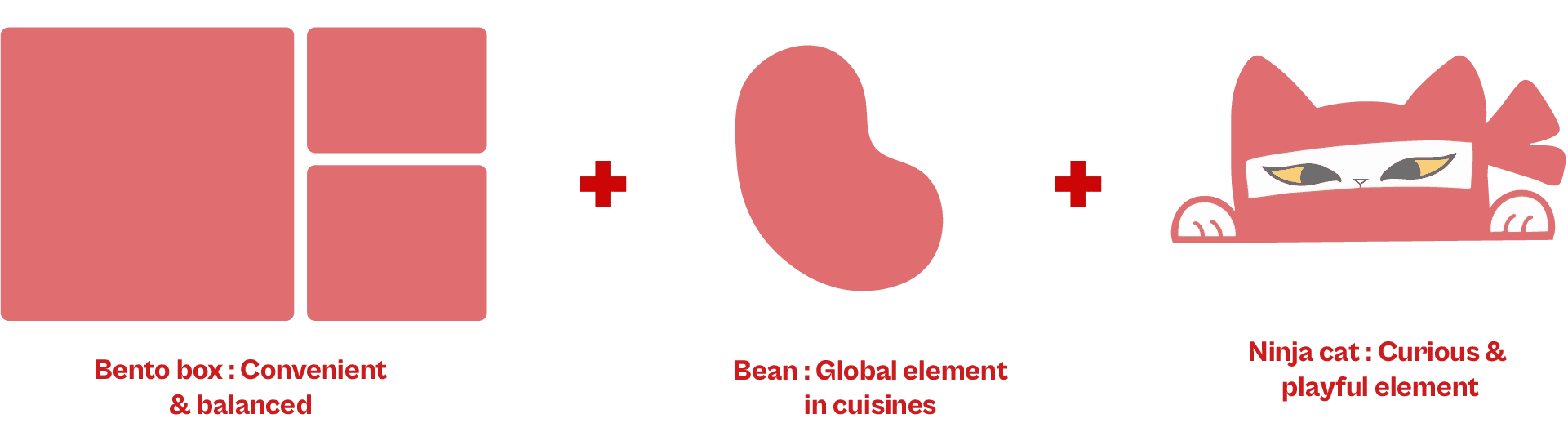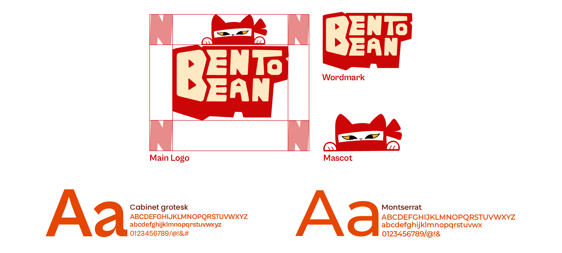 Early ideation focused on testing bold, chunky typography, ideated through shapes inspired by stacked bento box compartments, and a ninja style cat mascot to add curiosity, adventure, and fun to the brand identity.