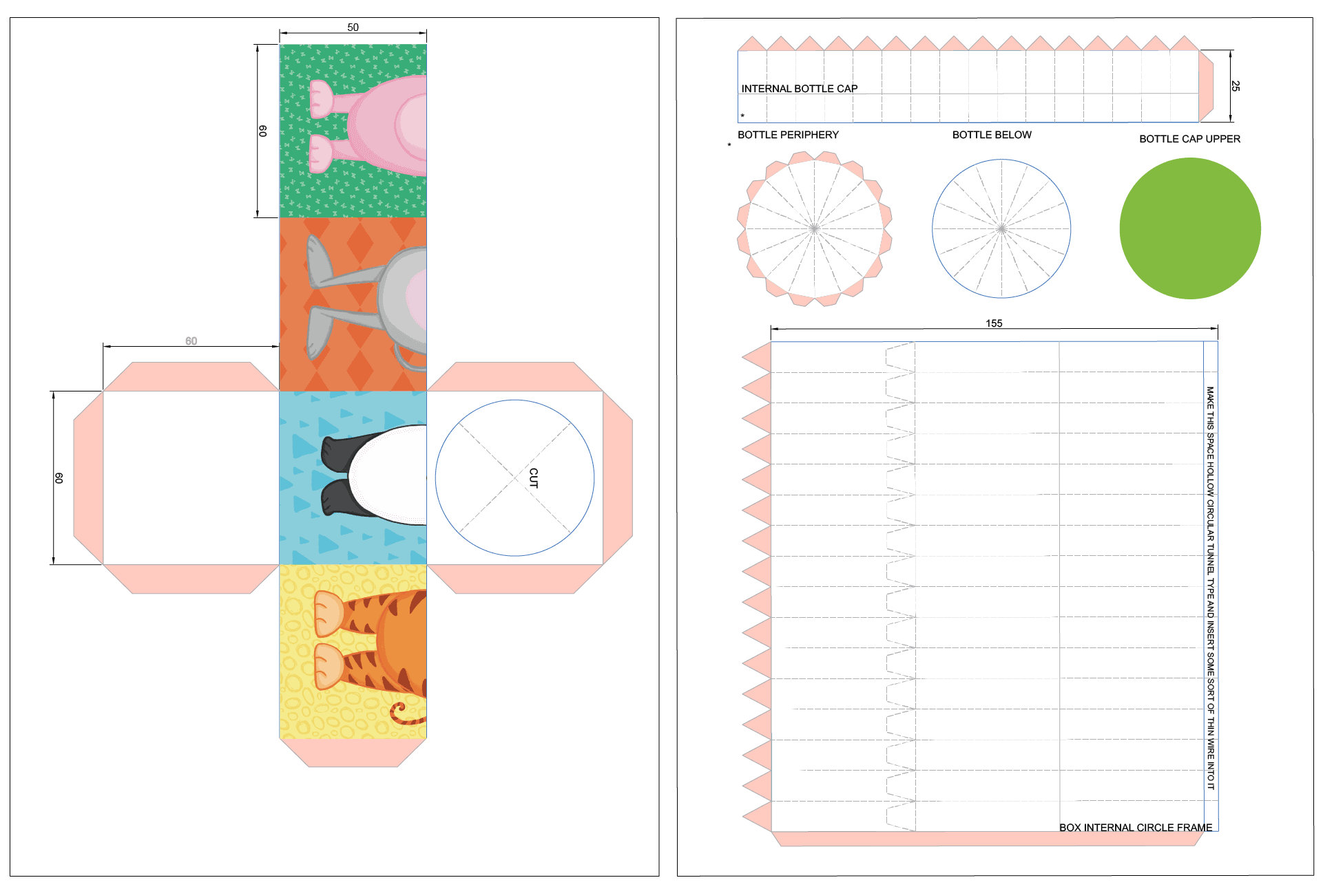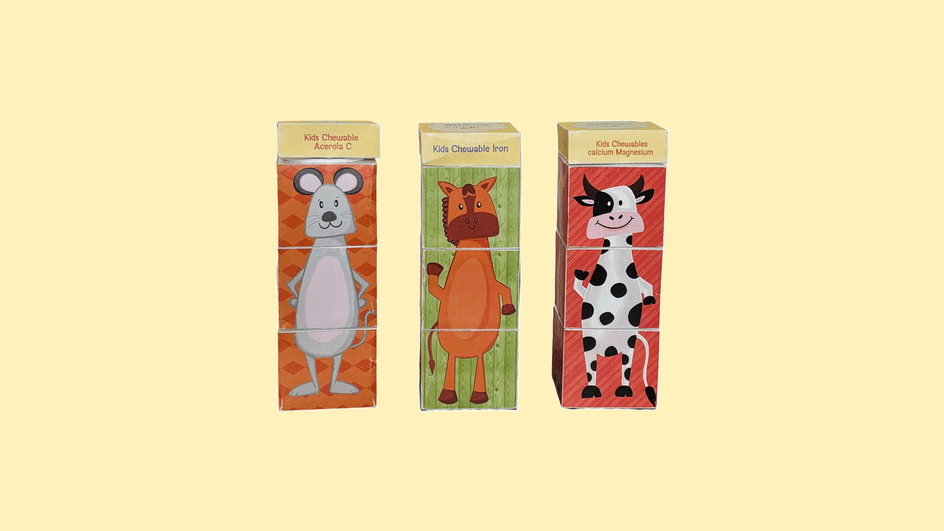 The outer box graphics feature playful animal illustrations that can be mixed and matched, allowing children to create different animal combinations and making the packaging interactive.