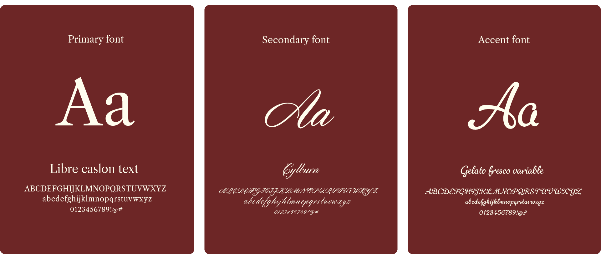 Libre Caslon Text adds a classic, editorial feel, while the cursive and accent scripts bring softness and personality. Together, the fonts feel romantic and expressive, matching Sabrina’s style and enhancing the overall mood of the book elegantly.